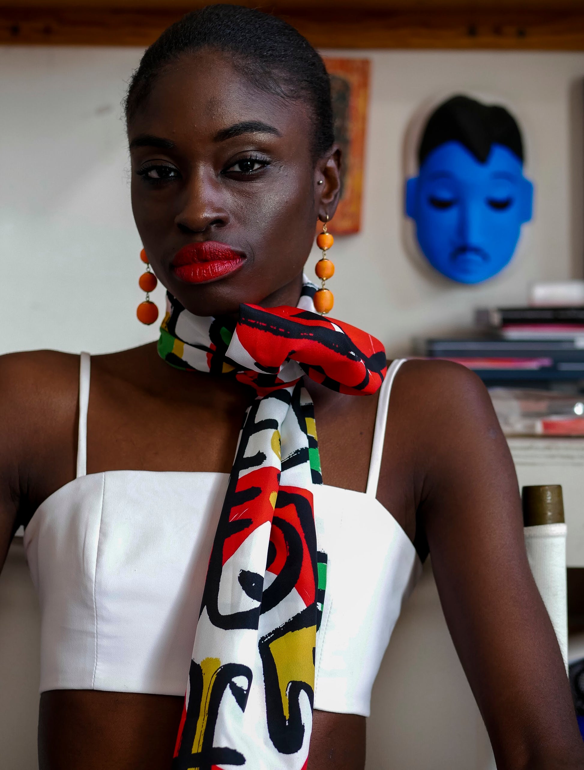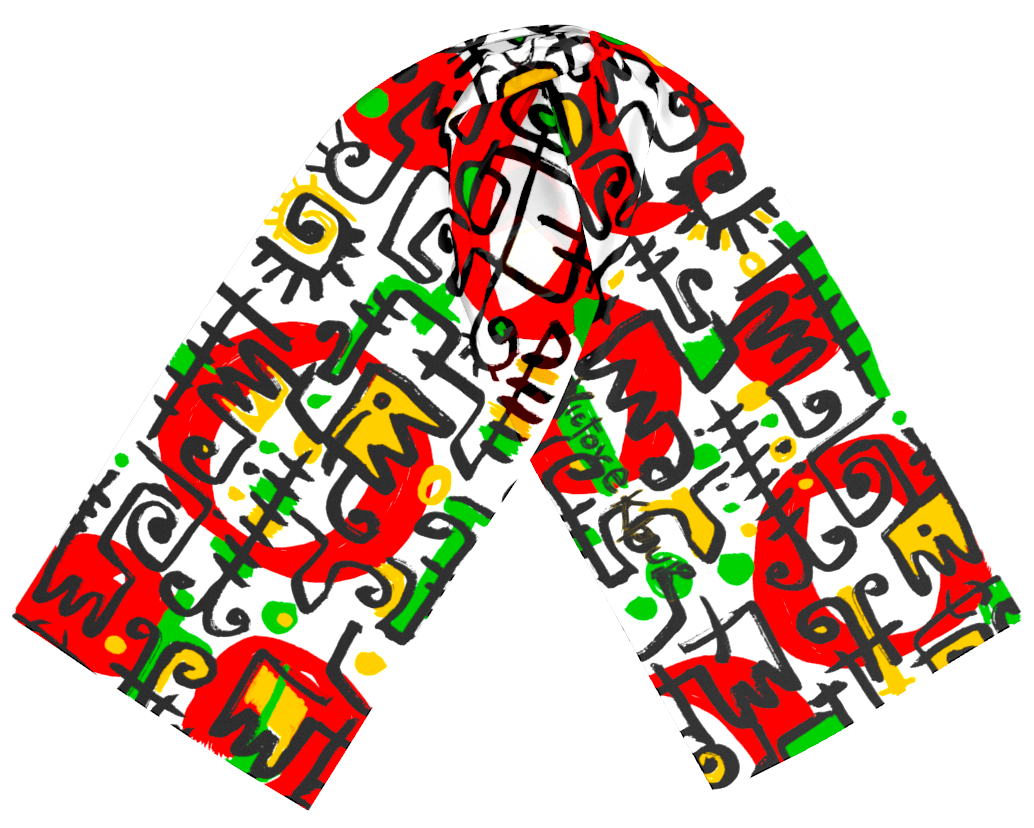 Victor Ekpuk created the art on this scarf specifically for this canvas.