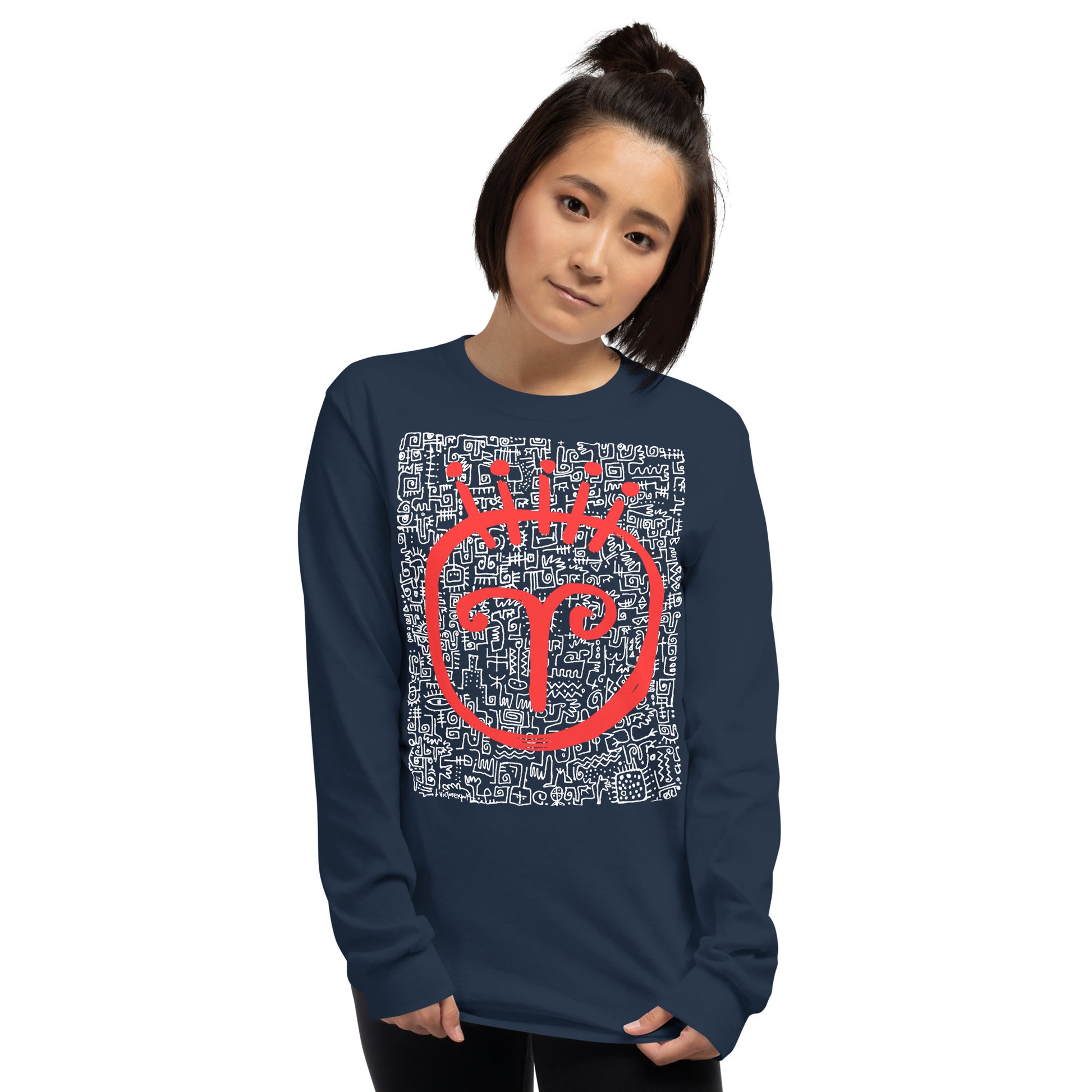 This unisex long sleeve shirt features the unique artwork of Victor Ekpuk, making it a one-of-a-kind piece. The soft and comfortable material allows for all-day wear while the intricate design adds a touch of artistic flair to any outfit. Perfect for art enthusiasts and fashion-forward individuals alike.