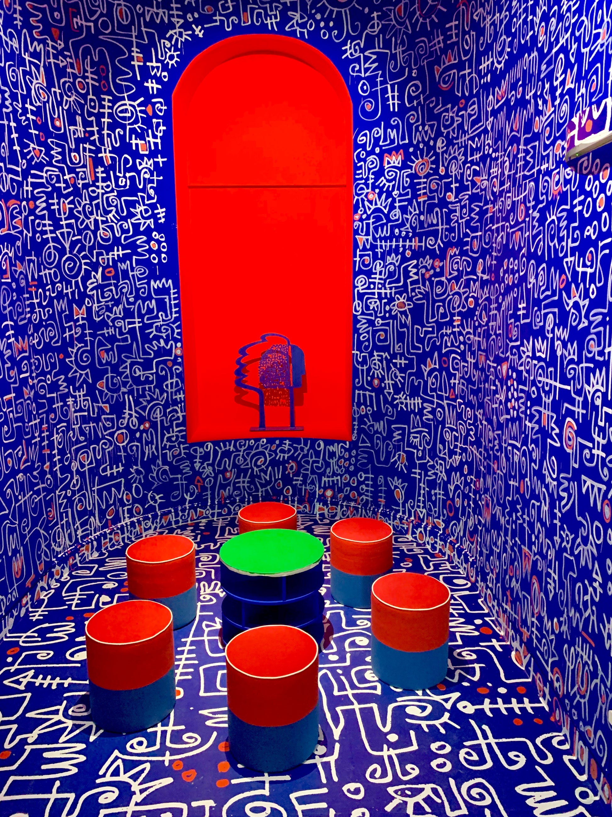 This Shrine special edition square scarf is inspired by Victor Ekpuk's much heralded artwork SHRINE TO KNOWLEDGE which was featured at the groundbreaking GET UP STAND UP exhibition at Somerset House in London in 2019.