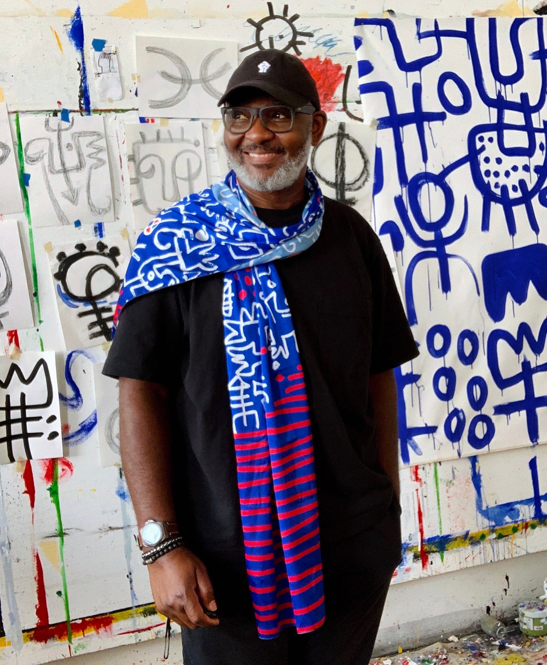Victor Ekpuk created the art on this scarf specifically for this canvas.